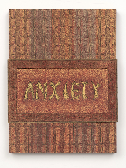 Sgraffito and mixed media on museum board on canvas