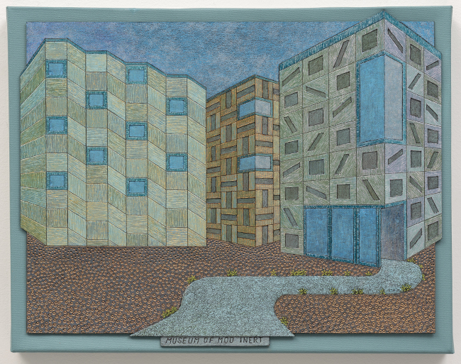 ARCHITEXTURE #6 - MUSEUM OF MOD INERT sgraffito and mixed media on museum board on canvas 14 x 18 x 2 1/2 2024