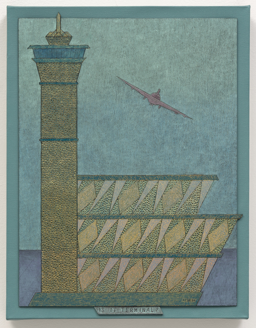 ARCHITEXTURE #8 - IS IT TERMINAL? sgraffito and mixed media on museum board on canvas 14 x 18 x 2 1/2 2025