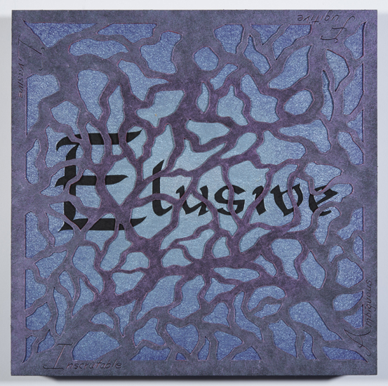 Sgraffito and mixed media on museum board, wood panel