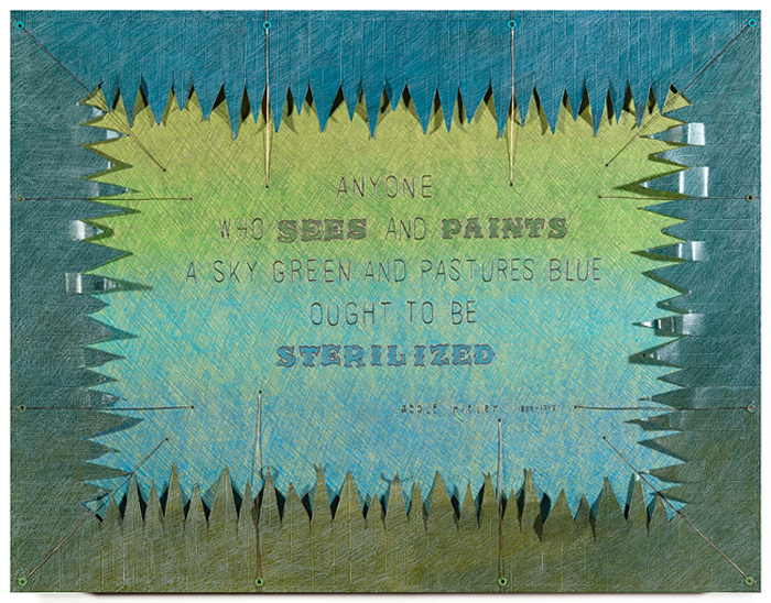 ARTFUL Anyone who sees .. Sgraffito and mixed media with aluminum and wire on museum board, wood panel 14 x 18 x 1 ½
