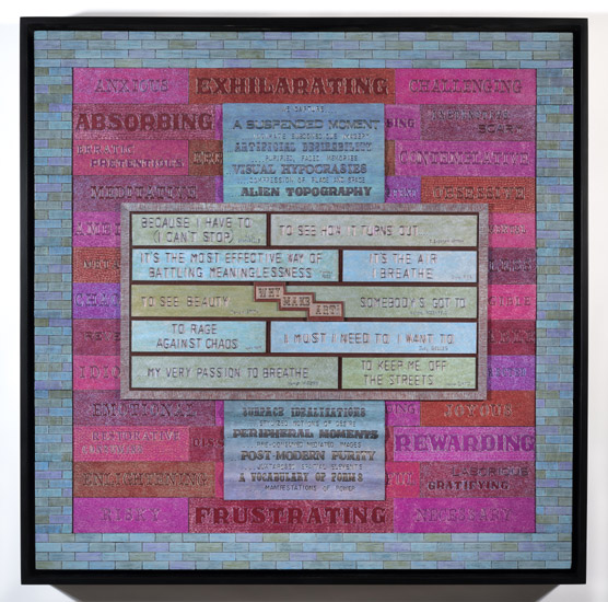 ARTICULATION WHY MAKE ART? Sgraffito and mixed media on museum board, balsa wood, on canvas 30 x 30 x 3 ½