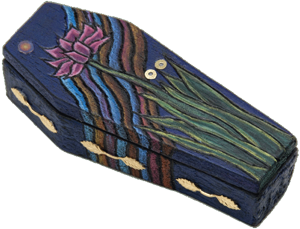 mixed media carved wood, paint, crayon, metal