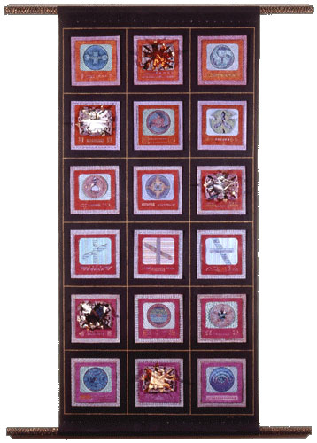 Sgraffito and mixed media on canvas (metals, paint, wood)