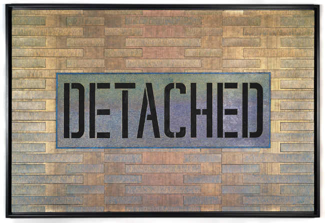 Sgraffito and mixed media on museum board, on canvas