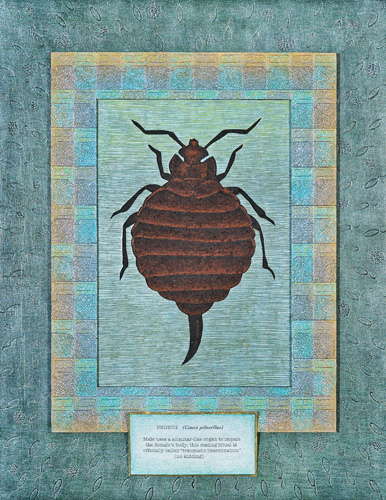 RE:PRODUCTION #3 Bedbug 14 x 11 x 1 ½ Sgraffito and mixed media on museum board and wood panel