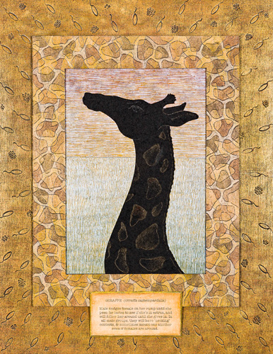 RE:PRODUCTION #14 Giraffe 14 x 11 1 ½ Sgraffito and mixed media on museum board and wood panel