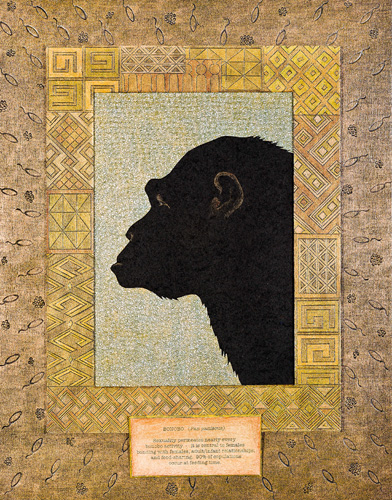 RE:PRODUCTION #15 Bonobo 14 x 11 x 1 ½ Sgraffito and mixed media on museum board and wood panel