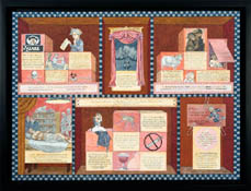 series of small narrative Sgraffito and mixed media pieces with